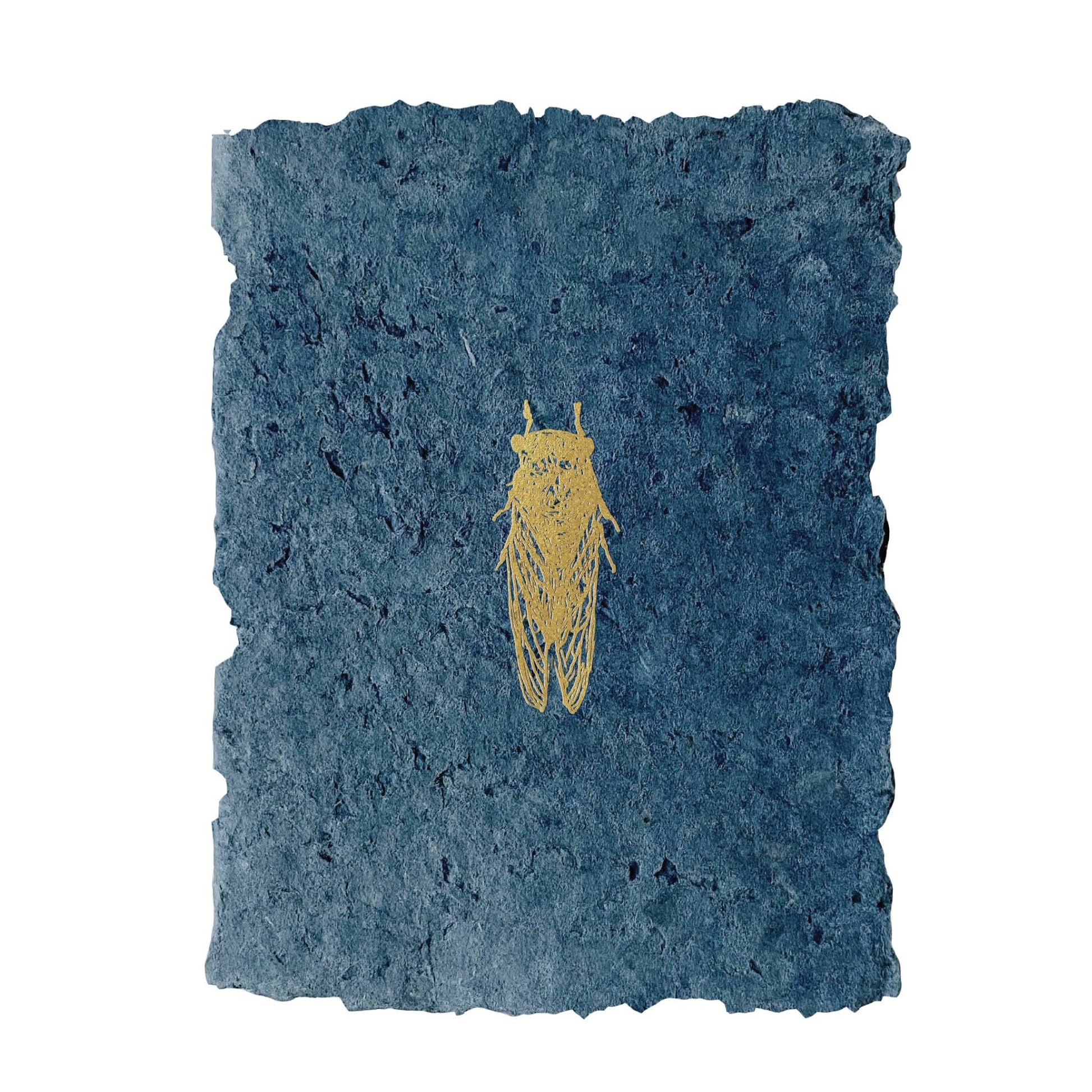 Deep indigo handmade paper with gold foil.